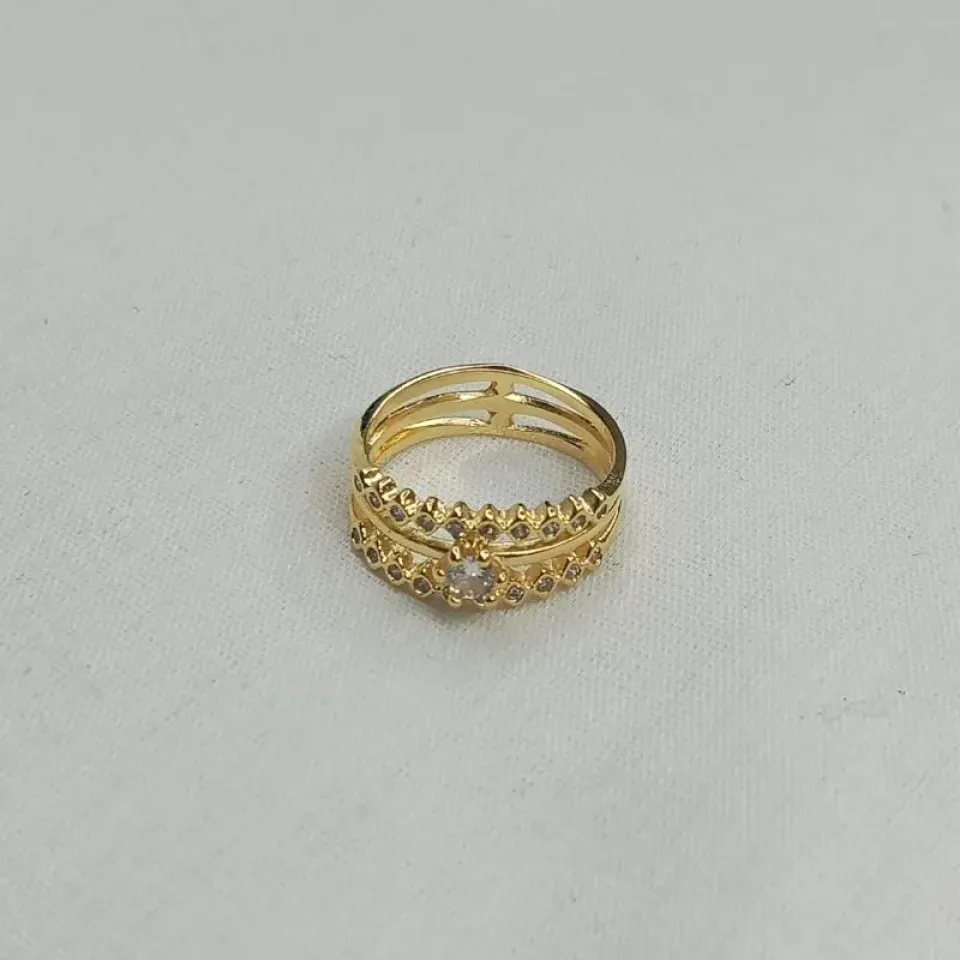 ANEL 1/2 ALIANCA C/ 4 ZIRCONIA QUADRADA...